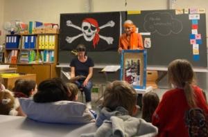 Auf dem Pausenplatz versammelten sich alle um eine Feuerschale. Gemeinsam wurde einer Geschichte gelauscht, gesungen und bei einer Tasse warmem Tee die vorweihnachtliche Stimmung genossen. Die Kinder nahmen sich Zeit, die letzten geöffneten Türchen des liebevoll gestalteten Adventskalenders zu bestaunen oder noch einmal einen Blick auf die hübsch geschmückten Bäumchen - mit den von den Kindern selbstgebastelten Anhängern - zu werfen.